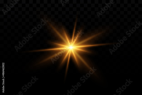 Light effect. Golden bright star, yellow sun. Starlight, shining light.