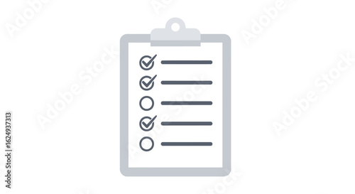 Light Gray Clipboard with Checkmarks and Lines Illustration
