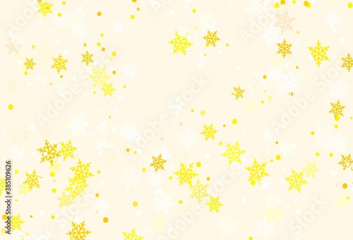 Light Green, Yellow vector pattern with christmas snowflakes.
