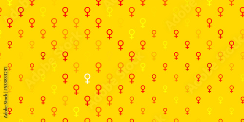 Light Orange vector background with woman symbols.