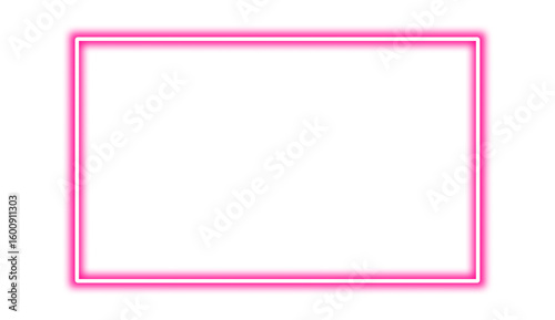 Light Pink neon rectangle shape frame. Vivid glowing lavender border isolated on transparent background. Shine glow light electric pink neon sign Banner, Mockup, presentation, Design element, PNG