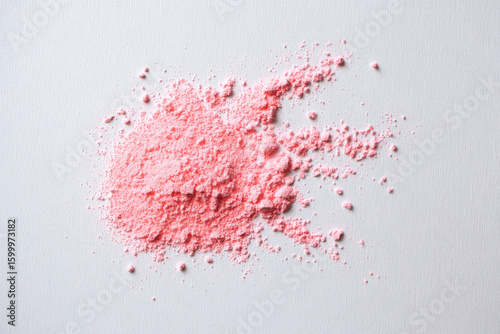 Light pink powder scattered on matte white surface, fine texture, soft pastel color, artistic and minimalistic, evokes calm and gentle mood