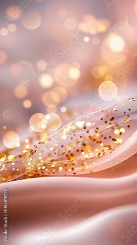 Light Pink Silk Fabric Ideal for Vertical Feminine Background Featuring Bokeh and Golden Sprinkles