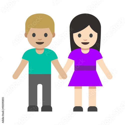 Light skin Man and Woman Holding Hands Clipart Illustration