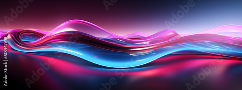 Light train motion illustration with dark background and neon and pink lights, sinuous lines and light violet and crimson, abstraction background création.