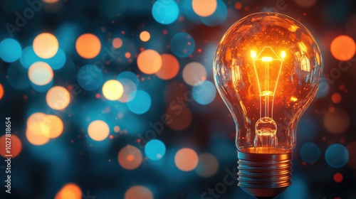 Lightbulb with a glowing abstract background and wide space for text overlay