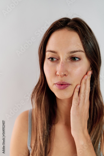 adult, apply, beauty, bodycare, brunette, care, caucasian, cheek, collagen, cosmetology, dermatology, face, facial, femininity, finger, green eye, home, human, lady, lifting, lotion, pampering, perfection, person, pretty, relax, routine, rubbing, skin, skincare, softness, touching, treatment, well-being, wellness