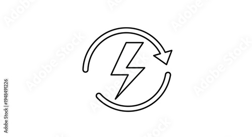 lightning, bolt, icon, arrow, circle, symbol, energy, power, electricity, weather, storm, signs, logotype, graphic, design, simple, line, art, illustration, flash, thunder, renewable, sustainability, cycle, rotation, turn, reusing, renew, repeat, reload, refresh, update, iteration, circular, round, ring, loop, symbolism, representation, emblem, mark, token, badge, crest, glyphs, pictogram, ideogram, diagram, scheme