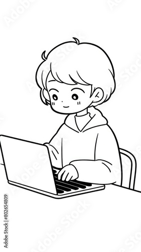 laptop, line art, cartoon, black-and-white, illustration, children, people, learning, communication, computer, notebook, cyberspace, education, technology, student, childhood, school, person, work, fun, working, game, play, business, sitting, office, typing, vector, businesswoman, wireless, casual attire, teenage, online, study, desk, home, screen, doodle