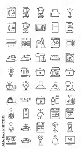 appliance, home, kitchen, technology, equipment, domestic, household, machine, electronic, device, tool, contraption, modern, convenience, automation, washing, blender, toaster, refrigerator, hot drink, air, conditioner, microwave, iron, kettle, cooker, oven, fan, hood, maker, remote, control, vacuum, cleaner, thermostat, scale, lamp, bell, monitor, dish, antennae, wi-fi, smart, digital, electric, power, energy, design, icon