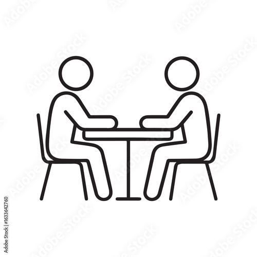 Line Art Depiction of Two Individuals Seated at a Table Having a Meeting