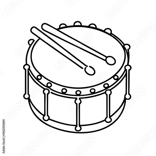 Line Art Drum with Sticks on White Background