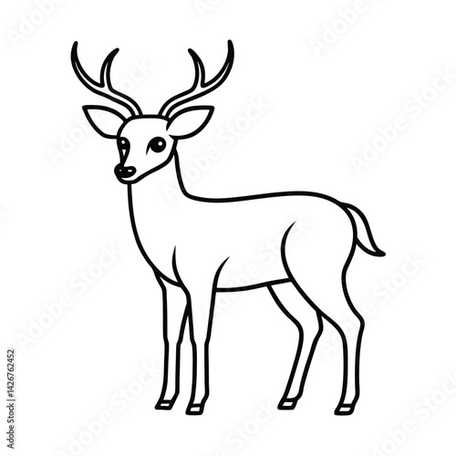 Line art illustration of a cute deer animal with antlers standing gracefully