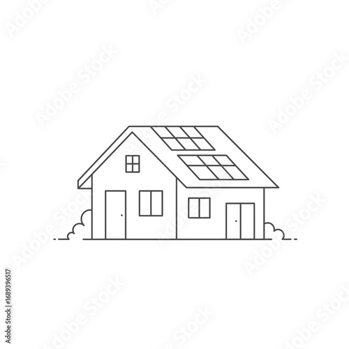house, solar, panel, renewable, energy, line, art, illustration, home, rooftop, sustainable, environmentally friendly, design, architecture, drawing, minimal, simple, clean, graphic, building, residential, electricity, power, technology, environment, green, grey, black, and, white, vignetting, outline, modern, contemporary, habitat, dwelling, property, real, estate
