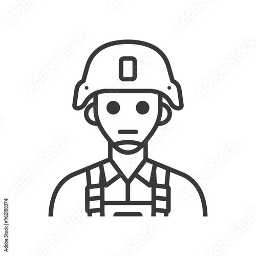 Line art illustration of a soldier wearing a helmet