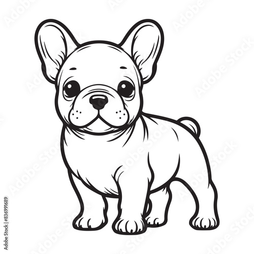 french bulldog, bulldog, dog, small, tiny, little, cute, baby, pet, puppy, mammal, breed, line, line art, hand-drawn, drawing, vignetting, outline, stroke, doodle, vector, illustration, cartoon, animal, colouring, character, adorable, wrinkled, comic, isolated, happy