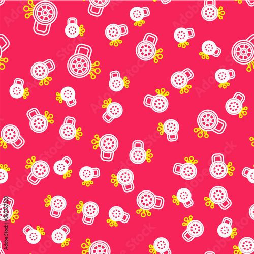 Line Cyber security icon isolated seamless pattern on red background. Closed padlock on digital circuit board. Safety concept. Digital data protection. Vector