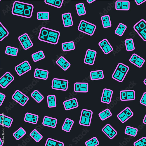 Line Identification badge icon isolated seamless pattern on black background. It can be used for presentation, identity of the company, advertising. Vector