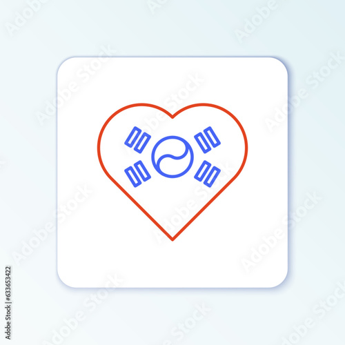 Line Love Korea emblem with heart in national flag icon isolated on white background. Colorful outline concept. Vector
