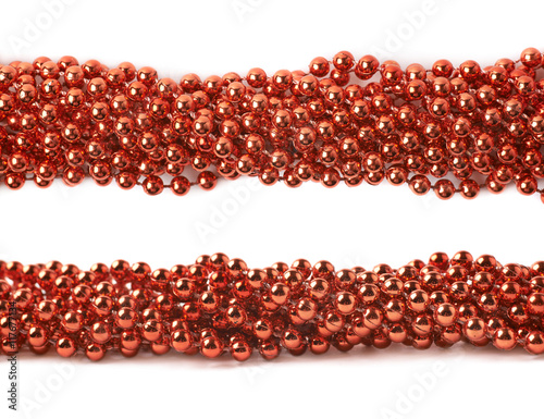 bead, thread, garland, christmas, decoration, shiny, white, hanging, celebration, ornament, object, string, party, line, border, metal, material, isolated, coloured, chrome, symbol, traditional, season, still, colours, toy, carnival, art, craft, jewellery, holiday, studio, event, chain, closeup, holiday, red