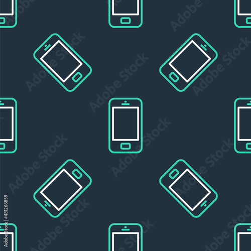Line Smartphone, mobile phone icon isolated seamless pattern on black background. Vector