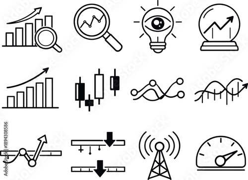 line, style, vector, icon, market, analysis, research, insight, forecast, chart, graph, candleholder, indicator, support, resistance, signal, momentum, strict, grid, layout, row, per, row, consistent, icon, size, perfectly