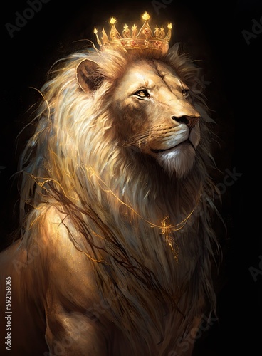 lion is the king of beasts, with a golden crown on his head, generative ai