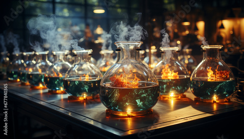 liquid, table, alcohol, whiskey, drink, bar, science, bottle, night, glasses, chemistry, laboratory, drinking glass, celebration, wood, flames, dark, wine, cocktail, equipment, transparent, dripped, ice, fire, flask, smoke, pub, luxury, alchemy, research, nature, beaker, party, heat, temperature, indoor, nightclub, old-fashioned