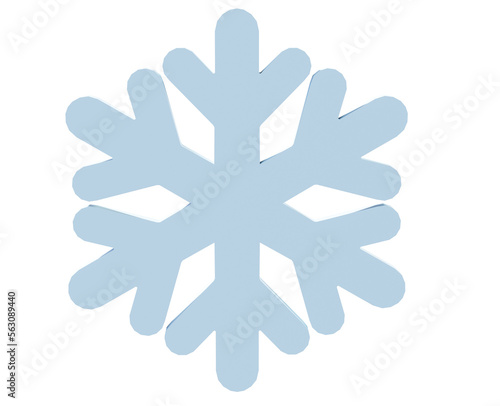 Liquid translucent snowflake made of crystal blue water isolated on white background. 3d render