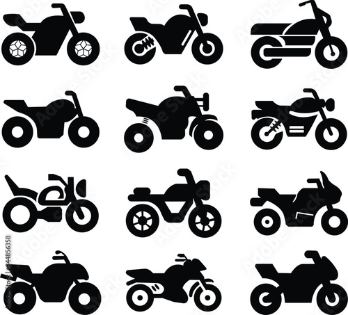 list, different, type, motorcycle, bike, motorbike, half face, kind, moped, scooter, roadster, sport, cruiser, touring, trail, chopper, collection, isolated, transparent, background, flat, black, vector, transportation, motocross, symbol, vehicle, signs, fast, motor, pictogram, ride, silhouette, wheel, classic, vintage, object, style, clip art, delivery, drive, engine, race, service, speed, standard