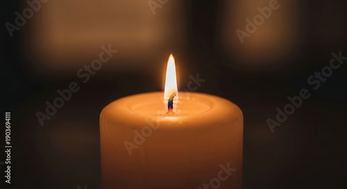 Lit Candle in Dark Room Serene Ambiance.