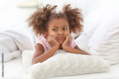 Little African American girl resting in bed