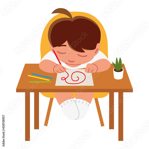 boy, painting, children, little, children, colours, crayons, plant, cute, education, male, drawing, paper, artist, creative, learning, painter, paint, cartoon, craft, preschool, schoolboy, vector, illustration, isolated, design, white, background