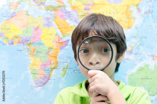 map, globe, children, earth, earth, boy, children, education, school, geography, magnifying, beautiful, little, blue, young, person, happy, glasses, white, looking, travel, lifestyle, vacation, childhood, science, asia, asian, magnify, class