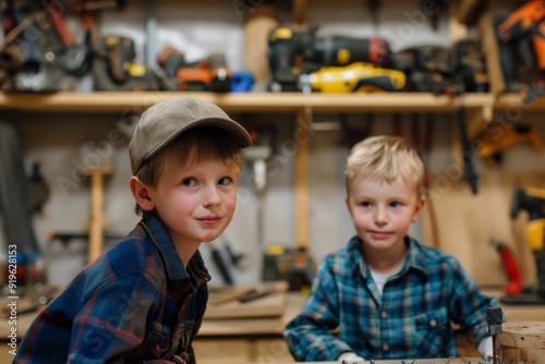 Little boys in workshop, Generative AI