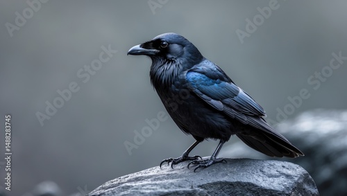 little dark raven sitting on a rock