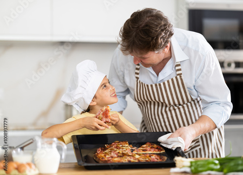 girl, children, father, daughter, pizza, learn, moment, preparation, sharing, smile, together, love, complicity, cook, family, fun, happy, home, kitchen, little, childhood, cookie, dough, cooking, food, male, female, man, caucasian, european, german, french, austrian, britain, 40s