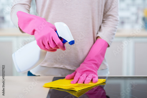 girl, children, children, childhood, lady, care, nice, beautiful, young, pretty, white, kitchen, table, life, day, lifestyle, room, cleaning, clean, glove, housekeeping, housekeeper, wipe, rag, cleanser, spray, rubber gloves, colours, pink, yellow, bright, cooker, surface, black, involved, beauty, home, joy, cheerful, happy, single, closeup, closeup