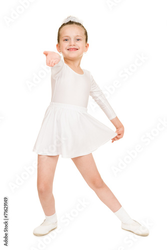 activity, body, caucasian, cheerful, children, childhood, dance, dancer, dancing, dress, exercise, female, girl, isolated, children, little, 1, people, smile, sport, studio, white, young, look, racked, ballet, ballerina, stretch, practice, posing, action, ball, gown, stay, shoe, pose, performer, artist, theatrical, learner, pupil, training, hand, up, full, length, physical exercise, ballroom