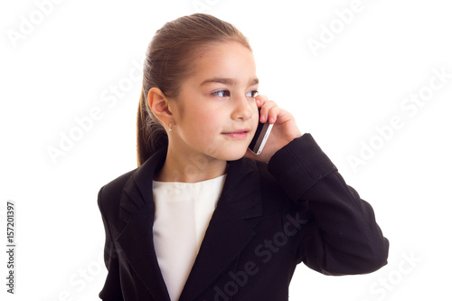 background, beautiful, beauty, black, blouse, business, caucasian, cheerful, close, clothes, education, face, female, girl, hair, human, isolated, jacket, model, nice, 1, person, portrait, smile, white, young, children, childhood, children, phone, smartphone, mobile, phone, communication