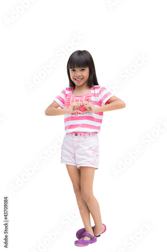 asia, asian, beautiful, caucasian, children, clipping path, cute, dark hair, daughter, emotion, feeling, finger, girl, hand, happy, nubes, isolated, joy, joyful, children, little, love, palm, recognition, small, smile, smiling, standing, thai, siam, valentine, white background