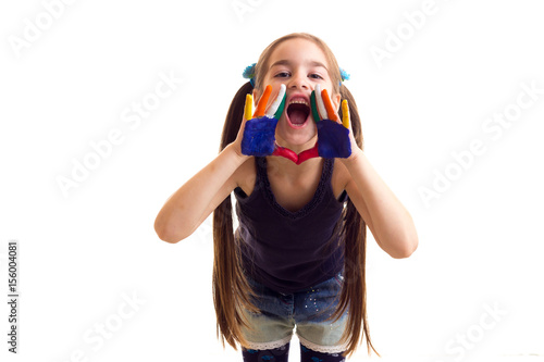 Little girl with colored hands