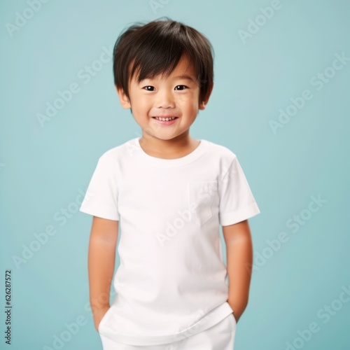 Little pretty boy smiling model posing at camera in bright studio. Generative AI