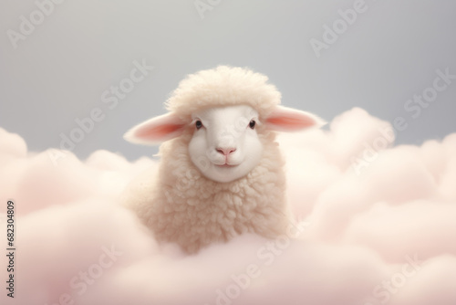 Little white sheep on fluffy clouds. Concept of soft luxury wool
