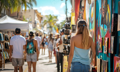 Local arts and crafts activities on display along the streets during the Calle Ocho Festival. AI Generated Images.