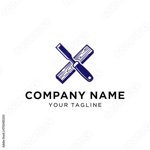 logotype, design, chisel, wood, plank, crossed, tool, carpenter, craftsman, carpenter's shop, construction, building, repair, vintage, retro, rustic, classic, simple, elegant, minimal, modern, blue, dark, graphic, symbol, icon, brand, identity, business, company, trade, craft, industry, texture, grain, shape, geometric, abstract, vector, illustration, artwork, image, element, template, professional, accurateness, skill, expertise