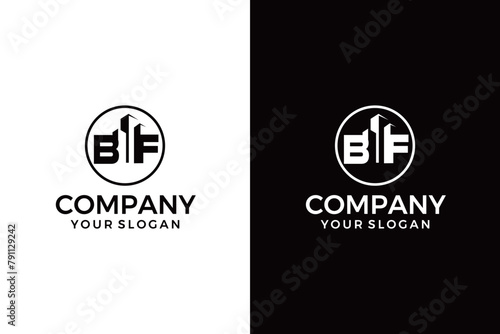 Logo design of B F in vector for construction, home, real estate, building, property. Minimal awesome trendy professional logo design template on black and white background.