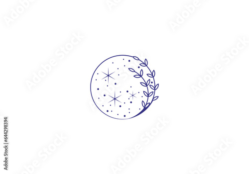 Logo floral and stars, Logo astrology and leaf, elegant, modern and minimalist, editable color