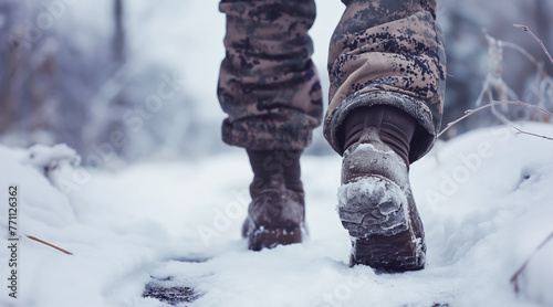soldier, snow, camouflage, winter, boot, military, cold, terrain, walking, trek, uniform, armed forces, nature, survival, hiking, gear, footprint, frosty, mission, patrol, adventure, environment, weather, isolated, wilderness, combat, footstep, path, march, ground, frost, ice, condition, service, duty, campaign, field, expedition, landscape, chill, trail, hike, frostbite, training