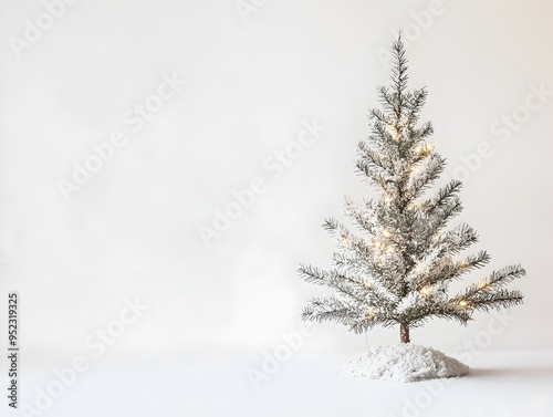 tree, winter, pine, snow, christmas, light, lichterkette, holiday, decor, elegant, minimalist, streamlined, product, studio, white background, high key, detail, crisp, isolated, clean, simple, festive, cosy, peaceful, serene, natural, nature, conifer, evergreen, sparkle